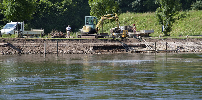 riverbank reconstruction underway.