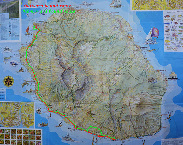 Departing St Joseph, Bob made the decision to head inland to Petite Ile. Winding narrow roads led us up the steep mountain side, upon which home and shop alike were built into the slope. Bob was reminded of Trieste as we travelled ever onward. Unlike Rodrigues and Mauritius, buildings here are painted in muted colours that seem to blend into, and compliment, the landscape: much more pleasant upon the eye.